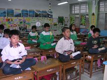曾千庭:升上三年级,是新的开始,我们多了一节有趣的课程,那就是社团,我上的是明慧组。我第一次来到了明慧教室好紧张,紧张到心脏都快跳出来了呢!在上“明慧”的过程中,老师说了好多好多的故事,有些很好笑,好笑到肚皮都快要破掉,有些很感动,感动到我快要哭了。老师有教我们念《论语》、《洪吟》,在那儿也有做书签、画画、做莲花和纸鹤等,还有我交到了很多好朋友,有庭甄、冠铨、宇洁、宇湘、秉辰、秉均,还有好多好多的朋友,老师也对大家很好,她善良、开朗,就象我的父母一样。在这里,我学到了很多东西,好开心、好快乐喔!我们还有炼功呢!我一直一直的炼功,身体都会很热,而且也不会感冒。