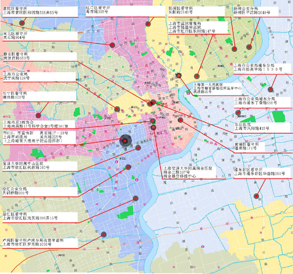 ![]() 上海郊区迫害大法弟子的场所地图 |