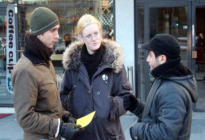 一位带着两个孩子的父亲听完学员讲解后索要中文资料,要寄给他的中国朋友。他得到了一份中文的《九评共产党》,又要了一份瑞典语《九评》留给自己看。后来他又带着孩子回来两次,拍照和询问以后他如何可以联系上退党服务中心,并提供帮助。