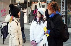 行人们纷纷停下脚步,看展板,索取资料。两个华裔青年听了中共活摘法轮功学员器官的事情感到很震惊。临走前两人作中国传统的合十手势,表示对学员的敬意,他们要带回中文报纸给父母亲看。一个瑞典人急步经过,开玩笑说中国人这么多,杀几个好。义工耐心的告诉他中共杀害了八千万老百姓,现在还活摘法轮功学员器官的事实,他的眼神严肃起来,说太可怕了!他又走到展板前仔细看起来。