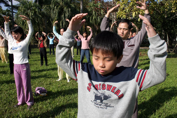 早上九时,来自宜兰各乡镇的学员先学法、交流。上午,有学员到宜兰火车站前洪法发资料。中午,学员们到附近的中山公园集体炼功,并向师父拜年。