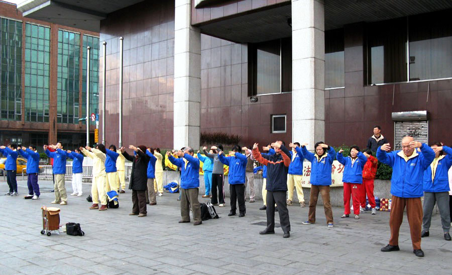 早上九时,来自宜兰各乡镇的学员先学法、交流。上午,有学员到宜兰火车站前洪法发资料。中午,学员们到附近的中山公园集体炼功,并向师父拜年。