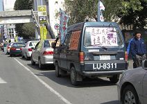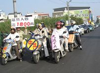 ![]() 游行队伍从头份镇公所出发,机车骑士开路 | ![]() 苗栗声援一千八百万勇士告别中共游行的车队格外亮眼 |