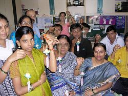 Srinivaspur终点站下车后,我们很快的被接到Byreshawara school,我们直接被引进校长室。校长ShriRama Reddy 先生早已在办公室等候我们到来。该校有一至十年级(一至五年为小学,六至十年为国中及高中,所以他们十年读完即可上大学),学生总人数总共二千多人。校长ShriRama Reddy本身也炼法轮功。