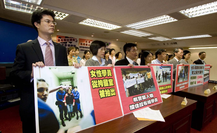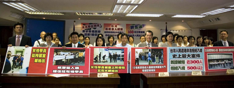 台湾立法院于二零零七年十月一日获得过半数(一百十三名)立委跨党派联署提案,谴责港府暴力遣返台湾法轮功学员,要求港府正式道歉、提出赔偿损害。