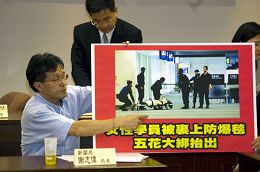 新闻局长和行政院发言人谢志伟谴责港府对法轮功学员的不人道行为。