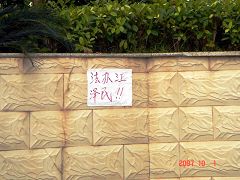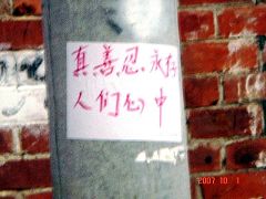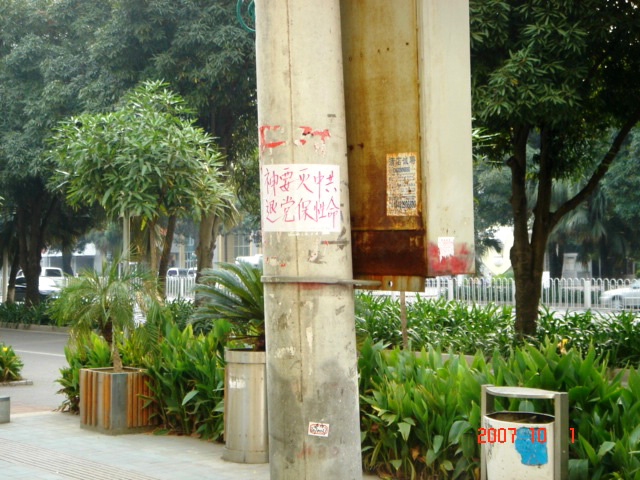 【明慧网二零零七年十月二日】二零零七年“十一中共窃国日”,正当中共恶党大搞庆祝,粉饰太平,掩盖不可救药的腐败以及日益增长的人民矛盾和政治、经济危机时,在中国大陆的广西壮族自治区的省会南宁市出现了大量用不干胶张贴的退党、灭党标语及法轮大法真相标语。