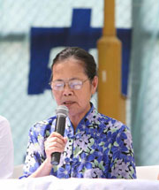 香港法轮功学员傅学英发言,谈到今年六月二十八日和另外一名法轮功学员朱柯明在香港高等法院入禀控告残暴镇压法轮功的元凶——前中共党魁江泽民、特务机构“六一零”办公室头目罗干和李岚清。傅学英说,案件会在十一月八日進行技术性聆讯,能不能承受住中共的压力,对香港法院来讲是一个很大的考验:“我们期待着法院最终能慎重处理,公平公正的依法办事。”