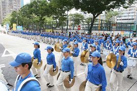 ![]() 天国乐团带领游行队伍出发,游行队伍精神抖擞,自九龙深水埗,经太子、旺角、油麻地、佐敦,去到尖沙咀的文化中心为终点 |