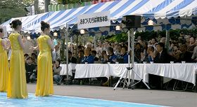 一年一度的板桥区民节是盛大的市民节日庆典,历年参加人数都达四五十万。今年法轮功学员作为中国传统文化代表受到主办单位的邀请,在事先发放的宣传资料中得到特别推荐,备受市民瞩目,还收到来自议员的贺词。节日当天,区民文化会馆前的交通干道被围成长达百米的节日主会场,各种日本传统文艺表演精彩纷呈,引来成千上万的市民前来观赏,将主会场四周的道路挤的水泄不通。