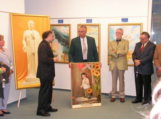 这个画展荟萃了多国艺术家的绘画作品。这些艺术家们有一个共同点:他们都是佛家功法“法轮功”的修炼者。主持人,德国“Ars Honesta”艺术和人权协会(Ars Honesta Deutscher Verein fr Kunst und Menschenrechte e.V)的董事卡斯顿诺尔(Karsten Nll)说:“‘Ars Honesta’将这个国际艺术画展带到了罗德马科是为了让更多的公众看到这个画展并引起人们的思考。”