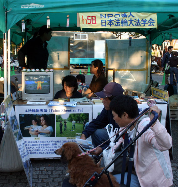 有一位日本男士到学员们的摊位上讲,他曾经在好多车站接过法轮功传单,得到的信息主要是法轮功在中国怎样被残酷迫害,他也买过大法书籍。今天在这种正式的场合再一次碰到法轮功让他惊奇。学员们跟他交流了很多内容,包括中共为什么迫害法轮功,不仅是因为炼法轮功的人多了,而且炼法轮功的人是有自己的独立思想,按照“真善忍”的原则判断一件事情的好坏,而中共一直是对自己的人民進行着洗脑,靠谎言和暴力维持统治。就是因为法轮功是有自己的信仰,会独立思考,不会盲目听从中共的谎言,所以中共害怕法轮功,开始了残酷的迫害。这位男士表示回去要好好读一读几年前买的那本《转法轮》