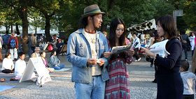 为了让参加第三届NPO节的NPO团体之间互相增加了解,二十日晚上主办者开了聚餐会,自由报名参加。法轮功学员参加了这个聚餐会。在自我介绍时,一位日本人学员介绍说,在去年的NPO节上,她的一个朋友接到了一份法轮功的传单,觉的好,就给了她,就这样她开始修炼法轮功。她非常感谢NPO节,希望大家都能接受法轮大法传单。