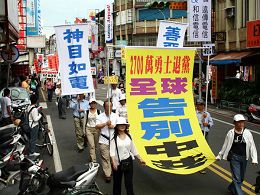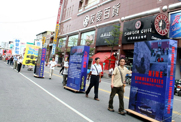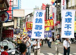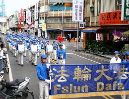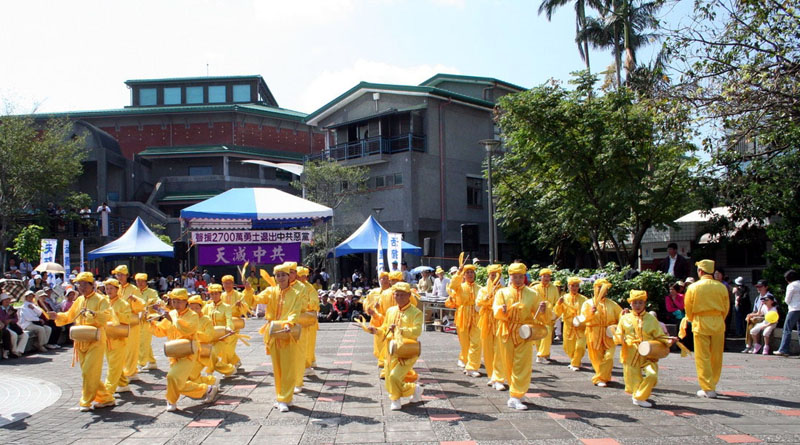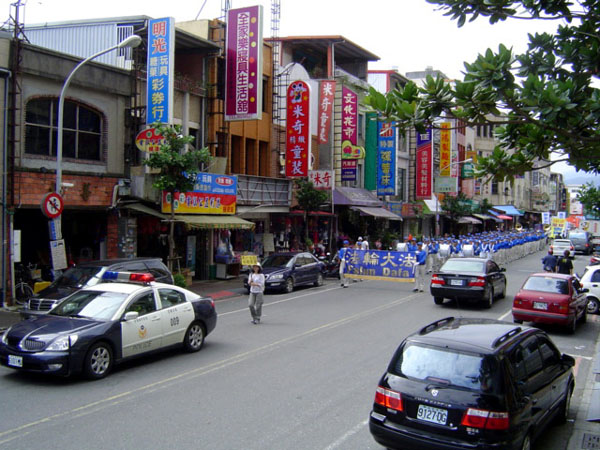 这是台湾东部首次的声援退党大游行,引起当地民众极大的关注,长长的千人队伍行进在繁荣的宜兰市区,阵容整齐的天国乐团、威风凛凛的旗鼓队与腰鼓队、柔美的仙女队、法轮功学员演示功法等等,传达中华正统神传文化的纯正、美好。述说真相的横幅、看板,揭露了中共迫害人权的实况,尤其是「活摘器官」的暴行,震惊了当地纯朴善良的民众。