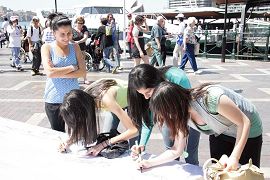 【明慧网二零零七年十月二十八日】(明慧记者罗娜、蕴韵、松原悉尼报道)二零零七年十月二十七日,由法轮功受迫害真相联合调查团(CIPFG)发起的人权圣火于上午十点左右到达澳洲悉尼市,多名澳洲政要、社区和人权团体的代表共同在悉尼市政厅前举行圣火迎接仪式,之后又在悉尼歌剧院附近的First Fleet公园举行了欢迎仪式和文艺表演等活动,近千名澳洲民众参加了人权圣火的欢迎活动。欢迎活动吸引了包括ABC电视、十号台、SBS电视、澳联社、每日电讯报、悉尼晨峰报(周日峰报)、2UE电台、2SER电台、SBS电台、ABC电台、大纪元时报、新唐人电视台、希望之声电台等多家中英文媒体前来采访报道。其中SBS电视、新唐人电视台、希望之声电台都对整个欢迎仪式和火炬传递活动进行了全程跟踪采访报道,希望之声电台还进行了对中国大陆的现场直播,让中国大陆的民众可以直接感受到人权圣火活动的盛况和澳洲各界对中国人权的关注和支持。在欢迎仪式的同时,很多义工在悉尼市中心继续散发真相传单,征集签名支持中国人权,很多民众了解真相后纷纷在征签表和横幅上签字表示支持。