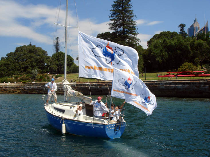 悉尼歌剧院之后,人权火炬登上一个圣火船,在悉尼港口航行一圈之后,向下一站悉尼附近的曼利海滩出发。在当天下午的四点左右,曼利海滩上当地的市长和议员也将举行欢迎仪式。在第一舰队公园的音乐会、表演和征集签活动仍然继续,并播放露天投影电影,一直到晚上九点结束。义工苏菲表示,用白绫绸布做的一个五米长、五米四宽的印有“人权圣火”标志、“支持中国人民举办一个没有中共的奥运会”的大型横幅,在公园上千名的游客在横幅上签名声援,已经签满了。当人们了解到法轮功学员因为信仰“真、善、忍”而遭到中共活体摘取器官时,人们哭了,他们说:不能让中共邪党亵渎象征自由与和平的奥运精神。