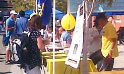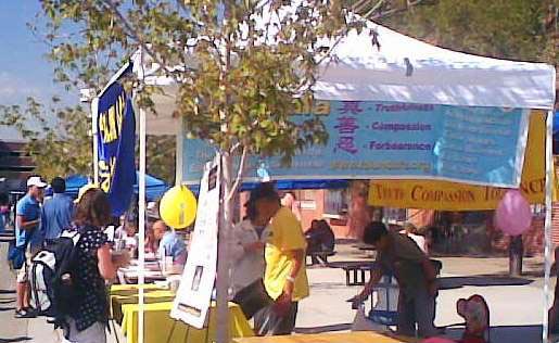 法轮功学员在奥瑞校园的世界友谊秋季节上设置展位,传播真相