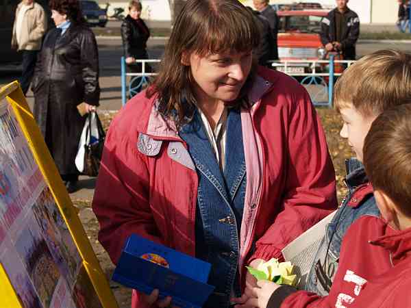 在活动期间有很多小孩和青年人对大法表示出极大的兴趣,他们主动的向学员了解法轮大法在乌克兰的洪传情况。