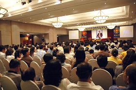 来自柔佛州的杨先生是一九九八年得法的学员。他坦然的与大家分享了自己在这九年中在得法修炼过程中没严肃对待修炼而走了许多弯路,希望讲出来让同修有个借鉴。他在一九九九年与一位同修发生矛盾。由于心放不下,脱离了大法三年。直到二零零二年,一位同修给他一些大法真相资料,他才恍然大悟这三年里竟然发生了这么多的事,而且自己完全没有理会。当时,回家看大法的书,感觉师父还没放弃他这个弟子。就这样他又渐渐的回到大法中修炼,也和那位因矛盾久没来往的同修和好了。妻子也在那时得法。