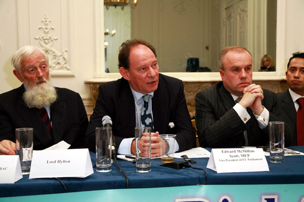 欧洲议会副主席爱德华•麦克米兰-史考特先生(Mr Edward McMillan-Scott)主持了新闻发布会,多名欧洲议会和英国政要、非政府组织、前奥运选手及中国人权活动人士出席发言,其中包括:大伦敦议会副主席布莱恩•科尔曼(Mr Brian Coleman),欧洲议会议员罗勃特•埃文斯(Mr Robert Evans),英国上议会议员希尔顿勋爵(Lord Hylton),前奥运会运动员、英国运动员俱乐部协会荣誉教练约翰•拜考特(Mr John Bicourt),中国人权活动人士许毅博士,民主中国阵线英国代表金露茜女士,以及曾经被中共劳教所关押迫害过的法轮功学员杨峰女士等。