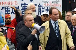 大伦敦议会副主席布赖恩•科尔曼在发言时说道,“我们聚集在这里,在伦敦的街头抗议并呼吁伦敦人抵制明年的北京奥运会,直到中国(政府)改善其人权纪录。在一个允许把数百万人民关进劳教所,允许活摘人的器官,却不允许宗教自由的城市举办奥运会,这是让人无法接受的。当伦敦在二零一二年举办奥运会时,我们会向中国(政府)展示如何举办一个开放而又宽容的奥运会。我向伦敦市长建议,明年不要到北京去。我还呼吁所有被邀请明年免费到北京的政要,把票退给中国大使馆,并且告诉他们,只有当中国成为一个开放、民主的社会时,才会到中国去。”
