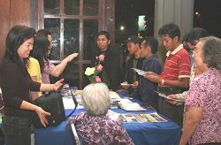 ![]() 人们认真听法轮功学员讲真相 |