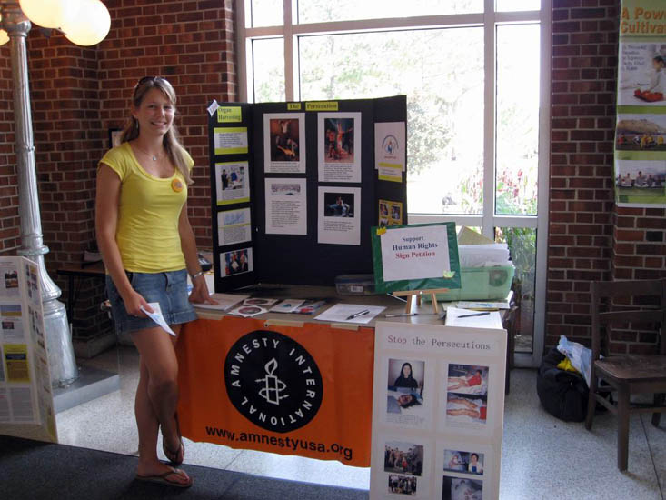 大赦国际在北卡大学校园内设置的法轮功真相展位