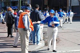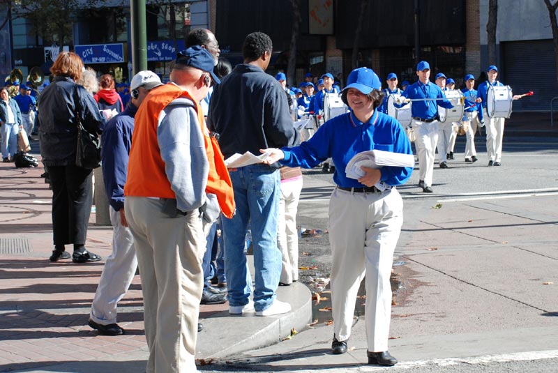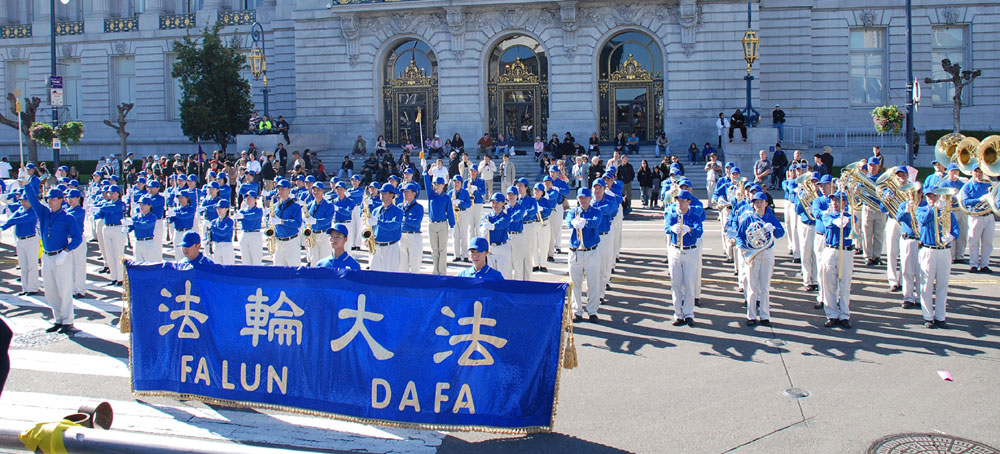 【明慧网二零零七年十一月十二日】(明慧记者王英旧金山报导)二零零七年十一月十一日,旧金山湾区的法轮功学员应邀参加一年一度的老兵节游行(Veteran's Day Parade)。法轮功军乐队赢得了主办者及观众的高度评价。游行总指挥黄国仁表示:能看到法轮功学员的演出,令人非常愉快。