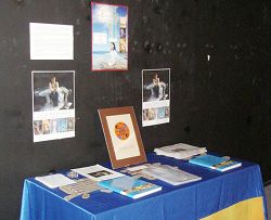 因为距离太远,法轮功学员们没能把作品带到岛上来,然而,他们以投影的方式令四十一幅画作在展厅中展出。这些画是由修炼法轮功的艺术家创作的,画家们用艺术作品向人们展示修炼法轮大法的美好感受及法轮功学员在中国所遭受的残酷迫害。画作和其背后的真实故事使参观者很受感动。