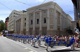 游行从下午二时开始,游行队伍沿惠灵顿最繁华的三条商业街行进。道路两旁站满了观看游行的人们。当法轮功学员的天国乐团、花车出现在游行队伍中时,人们发出了惊叹和欢呼,用掌声表达内心的感受。