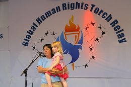 她说,“如果中国还有很多人生活在痛苦中,就不应该在那里举办奥运。圣火的传递把人权和正义带到世界各地,今天我和女儿站在这里,希望人权圣火会点燃新的开始,从此我们可以不再担忧后代能否享有平等的权利和自由。”