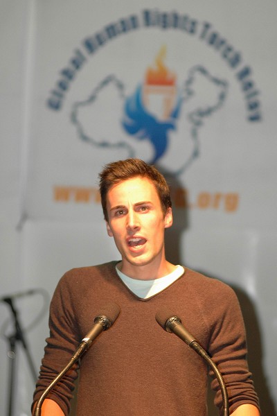 他说:“我今天很荣幸能在这里为人权而呼吁,但不仅是荣幸,我们更有义务与那些受迫害的人们并肩作战。”