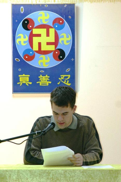 学员Mathieu Sirvin介绍了他通过专注学法,恒心修炼去执著,不断提高,用心做救度众生的证实法工作的体会。