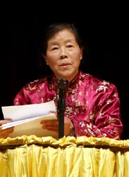 今年七十岁的旧金山东湾法轮功学员王菊全谈了她在背法中的升华。她认为法这么好,应该背下来。她开始背法时,感到很难,花了九个月的时间,才背完了第一遍。第二遍还没背完,中共对法轮功的迫害就开始了。由于忙于讲真相的活动,停止了背法。后来她看到明慧网上同修交流背法的经历,又开始了背法。背法为她带来了宁静、祥和。现在她每天早上五点半就开始背法,然后炼功、发正念。背法时,通读悟不到的法理都展现出来了。对法理解更深了。她希望有能力的学员都能够把法背下来。