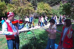 ![]() 法轮功学员合唱大法弟子创作歌曲一位学员拉着小提琴,悦耳感人的旋律吸引大批中国大陆游客驻足聆听。 |