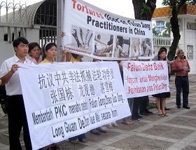 ![]() 在中共驻马大使馆外抗议中共非法抓捕法轮功学员 |