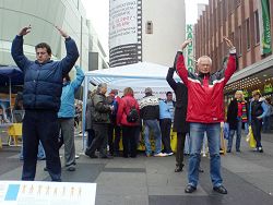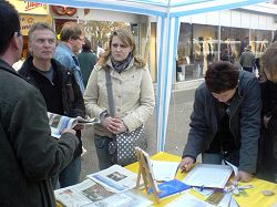 ![]() 签名支持法轮功,呼吁制止迫害!信息台前一整天人来人往,络绎不绝。许多明白了真相的德国民众做出了正义善良的选择!很多人还纷纷鼓励和祝福法轮功学员! |