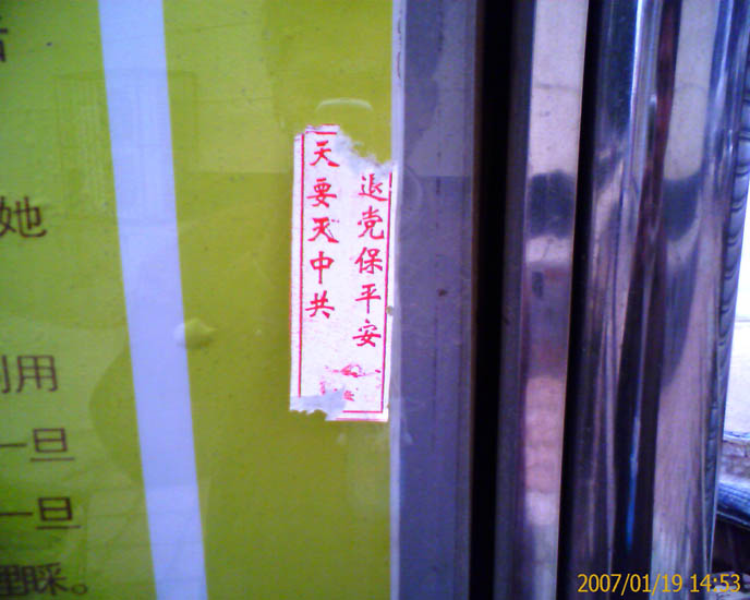 【明慧网二零零七年十一月八日】限于自己的能力,只拍摄了几张真相不干胶图片,其实在湖北黄梅农村,有一条路上全写满了“法轮大法好”,目前仍保存完好。