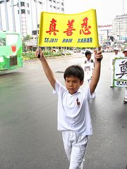 ![]() 高举“真善忍”的法轮功小弟子在游行中 |