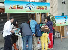 ![]() 签名支持人权圣火的民众络绎不绝 |