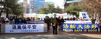 ![]() 韩国清南道天安市,庆祝二千九百万退出中共游行活动 |