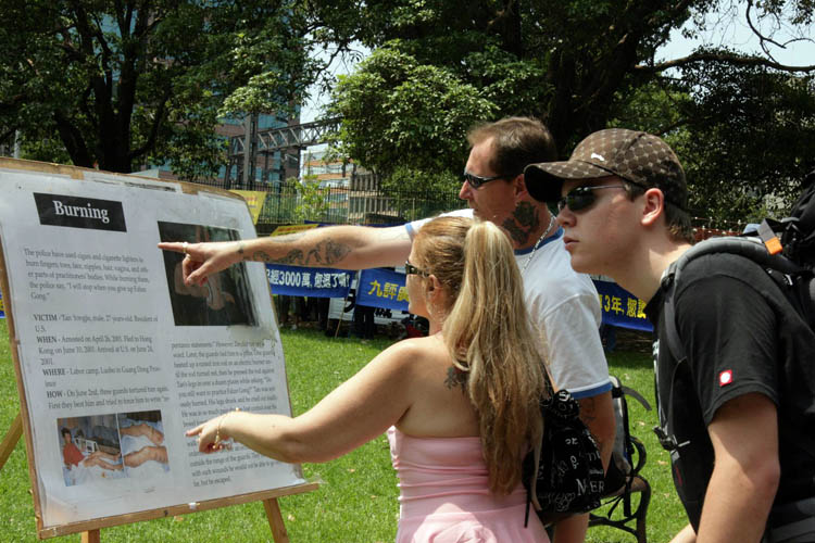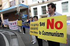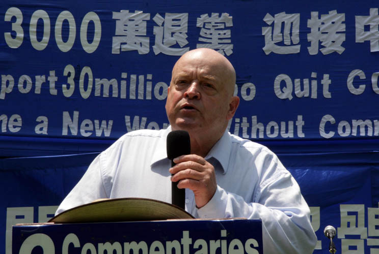 澳洲的语言学家兼诗人麦克•达比在集会上用中文呼吁澳洲人认清中共的罪行,拒绝购买奴工产品并抵制北京奥运。他说:“中共已经杀害了八千万的中国人,这是不能容忍和允许的。我们要反对中共践踏人权、反对奴工产品和集中营。我们要告诉澳洲政府,奥运只能在自由的国度举行。中共仍然在践踏人权,所以我要在这里传递一个强烈的信息:退出共产党。”麦克•达比连续三遍用中国话喊“退出共产党”,口号声在公园上空回荡,将集会的气氛推向高潮。