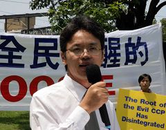 脱离中共的前外交官陈用林在集会上披露了自己心情沉重,他说:中共当局近日抓捕了自由作家荆楚,因为他在网络上揭露中共暴政、欺压百姓的现状。这说明中国国内环境依然十分黑暗和严峻。但同时他看到这么多人退出中共及其体系,感到欣慰和希望。他认为退党运动是很有成效的。中共就象一座破旧的老屋,摇摇欲坠,崩溃在即。他认为人们不仅从组织形式上退出中共,也要从精神上摆脱中共的控制,他说:“我呼吁全体的中国知识份子、工人和农民加入到这个退党大潮中来,多一个人多一份力量,早日退垮中共。”
