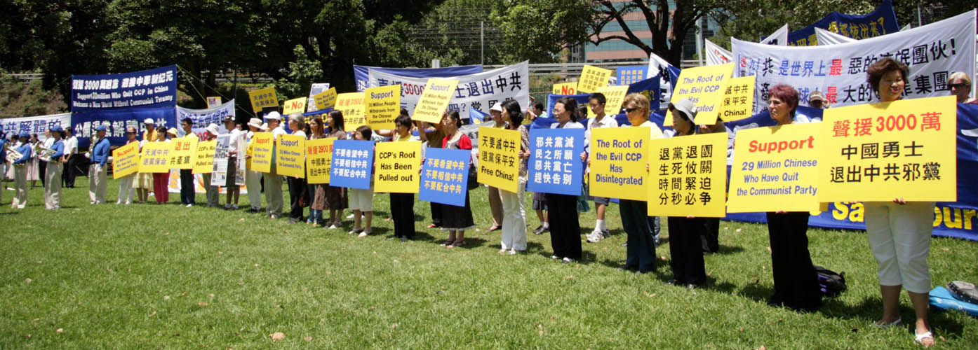 悉尼著名电台主持人斯蒂文•辛、前中共外交官陈用林、澳洲国会议员凯丽、绿党代表议员奎斯丁、澳洲世界和平联盟代表瞿西、澳洲退党服务中心代表斯考特•陈等在集会上发言。