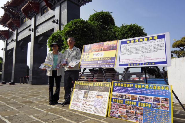 ![]() 法轮功学员持续在日月潭文武庙前向民众讲述法轮功遭到中共迫害的真相 |