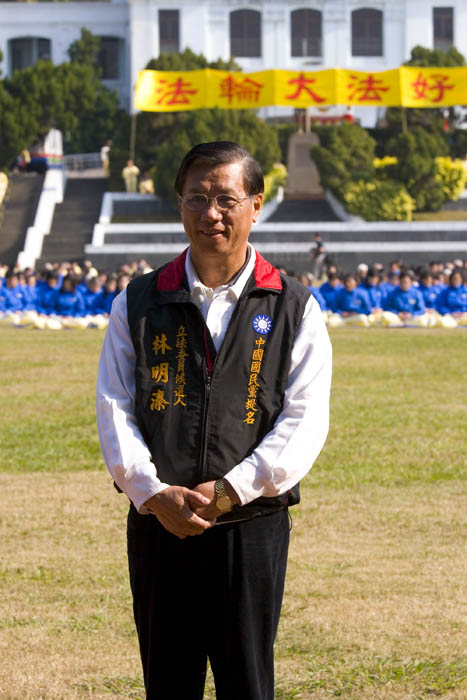 曾任南投县集集镇长、县议员,现国民党立委参选人林明溱也至排字现场致意,他说他感受到法轮功在台湾是个很有活动力与向心力的团体,大家是主动热诚的参与,显示法轮功对百姓很有吸引力。当林明溱知悉「真善忍」的涵义有「说真话、办真事、做真人」,以及修善生出慈悲心,对待他人要「打不还手、骂不还口」,要讲忍之后,林明溱表示很认同「真善忍」,他希望大家都能达到真正的「真善忍」的境界。