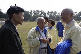 有位九十六岁的马爷爷和另一位九十二岁的何爷爷,都是早上五点半就从台南出发来参加,他们下午继续参加台中的三千万退党游行,并将于隔日在台中中兴大学参加一年一度的台湾地区法轮大法修炼心得交流会,他们的步履稳健看不出疲累,精神矍铄、耳聪目明的马爷爷说:「修炼很简单,就是遵照师父(李洪志先生)说的去做,遵照真善忍的要求去做。」