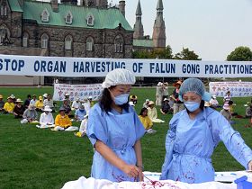 为了能尽快制止中共对法轮功学员的迫害,制止中共活体盗取法轮功学员器官的行为,全世界上百个城市的法轮功学员以模拟演示等方式揭露和抗议中共的暴行。世界各地很多民众看过模拟演示后都主动签名表示对中共的强烈谴责,很多媒体进行公开报导,不少政府官员和社会组织都作了公开谴责中共暴行的发言。
