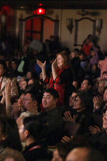 整个演出从始至终观众们不断的报以掌声,当遇到自己喜欢的节目,观众的欢呼声不绝于耳。一群少年表演的“大唐鼓吏”,气势豪迈,把大唐鼓吏的“忠”、“勇”诠释的淋漓尽致,引来了阵阵掌声。舞剧“觉醒”,当演到世人不再沉默,站出来维护正义时,全场顿时爆发了雷鸣般的掌声,舞台上下合为一体。