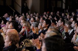 ![]() 观众们聚精会神观看“神韵纽约艺术团”演出 |